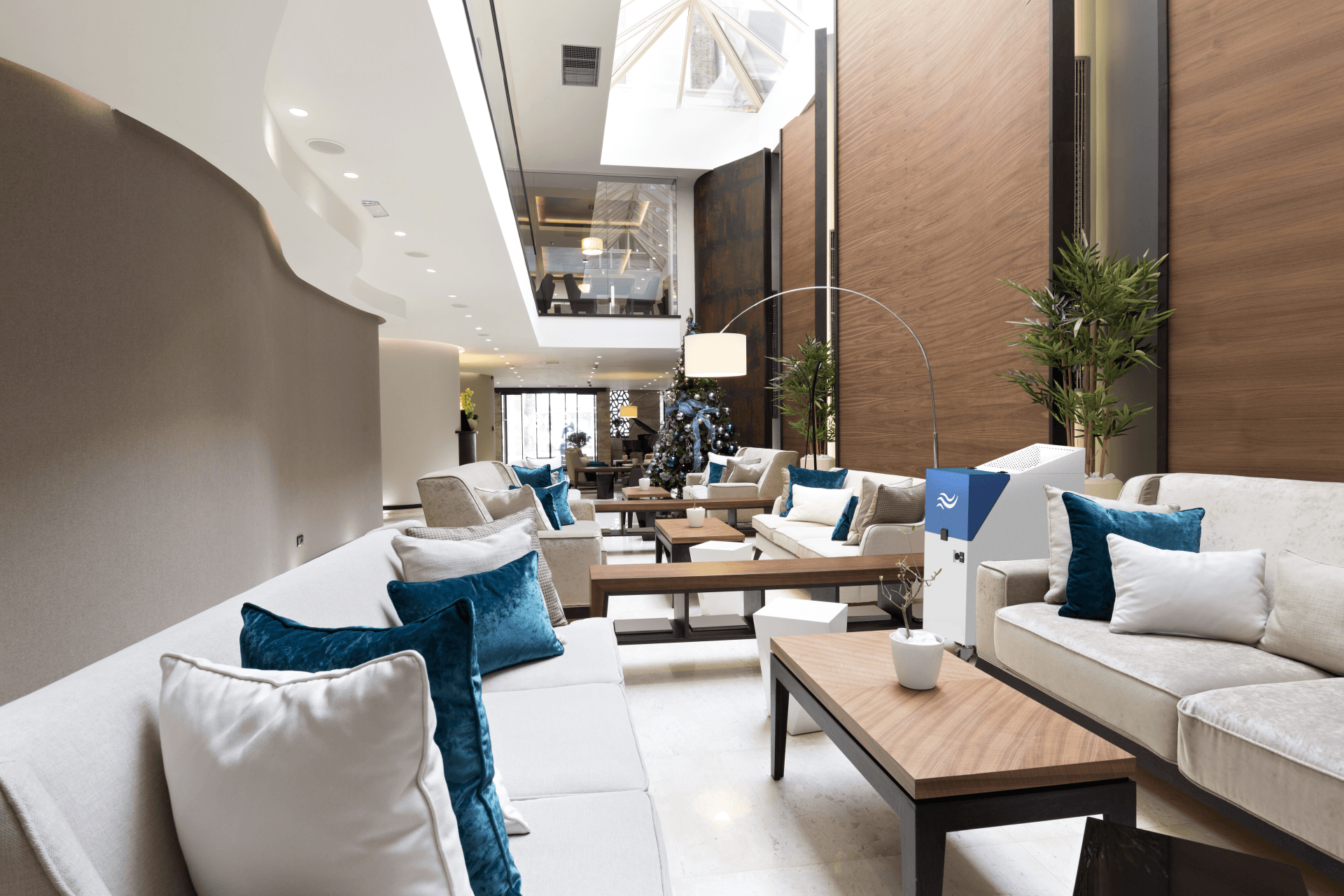 Die Luft wird in fast 2m Höhe angesaugt und dann durch eine UV-C-Bestrahlungssektion geleitet.